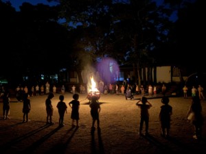 無事にゴールした先ではキャンプファイヤーが待っており、大きな炎を見つめ、