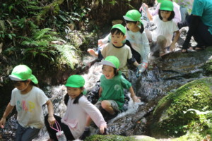 虫や川の生き物を探したり、シャワーをかけ合ったりして遊びました。