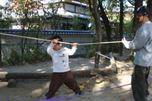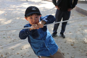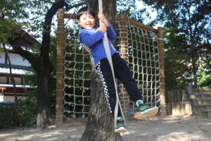 また、普段はこどもの森には無い ”スラッグライン” を今日は特別に設置しました。