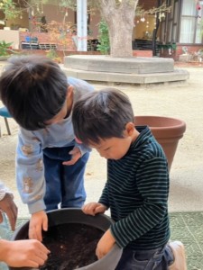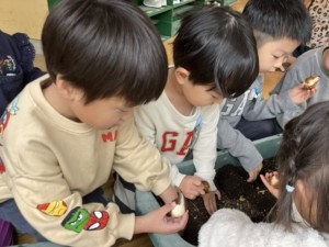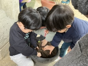 2学期最後の週にいちょうさん(年中)みんなでチューリップを植えました🌷