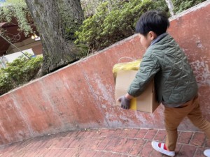 飾りが全部外れツリーを片付けると重いツリーを運んでくれる力持ちさん!