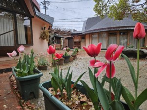 いちょうさんが植えた中庭のチューリップも、子どもたちに会えるのを楽しみにしているように咲き誇っています。