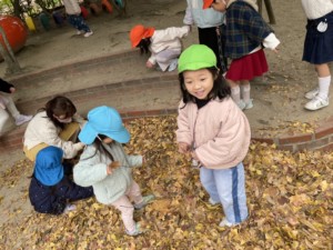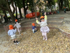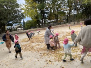 外に出ると「さむい~!」と口にする子どもたちですが、いざ園庭に出ればみんな元気いっぱい!冷たい風にも負けず、駆けまわったり、秋ならではの自然あそびを思いきり楽しんだりしています。